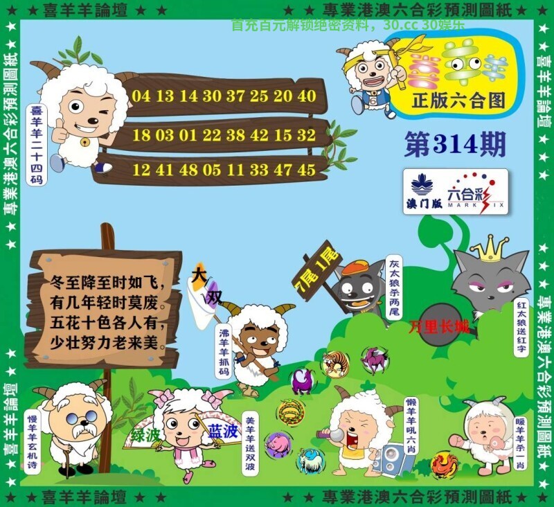 | 315期平特:☃️【狗狗狗】☃️ 315期二连:【狗猪】【羊猴】 315期三连:【狗猪牛】【羊猴虎】 |